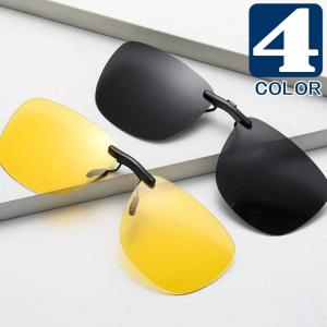 ナイトビジョン クリップ サングラス メガネにはさみ簡単装着 送料無料 UV400 偏光 ドライバー 男女兼用 スクエア形 ケース メガネ拭き 付き 父の日