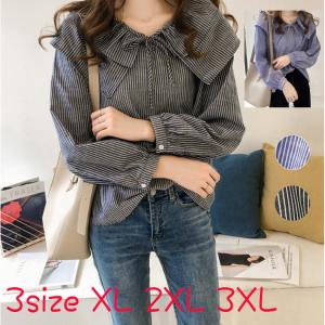 シャツブラウス レディース シャツブラウス 長袖 ストライプ柄 ピーターパン襟 プルオーバー カジュアル おしゃれ XL 2XL 3XL 2L 3L 4L 大きいサイズ 送料無料