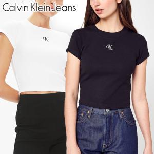 Calvin Klein Jeans カルバンクライン ジーンズ CK リブ クロップド Tシャツ レディース J20J218337 ブランド 白 ホワイト 黒 ブラック プレゼント かわいい