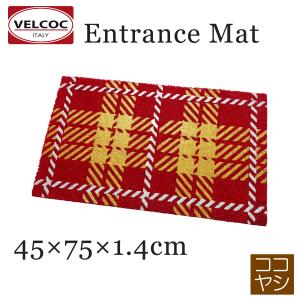 玄関マット 屋外用 泥除け クリスマス 冬 インテリア 滑り止め チェックレッド コイヤー ドアマット 天然素材 74×45×1.4cm VELCOC おしゃれ イタリア