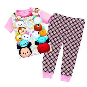 ツムツム パジャマ 半袖長ズボン 上下セット (ピンク)