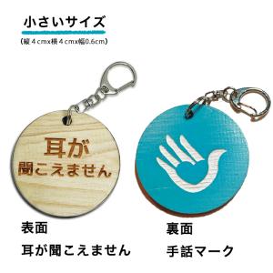 両面 手話キーホルダー 耳が聞こえません 赤文字 大サイズ 小サイズ 単品 手話 ひのき メッセージ サイン キーホルダー