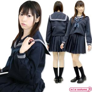 1123D★MB【送料無料・即納】 白●合学園高等学校 冬服 サイズ:M/BIG 長袖 紺 セーラー服 プリーツスカート 学生服 制服 有名校レプリカ 可愛い コスプレ 衣装