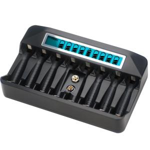 マルチチャージャー 乾電池充電器 電池充電器 ニッカド、ニッケル水素 リチウムイオン電池 単3、単4、9V充電池対応 LCD付きマルチ充電器 日本語説明書付
