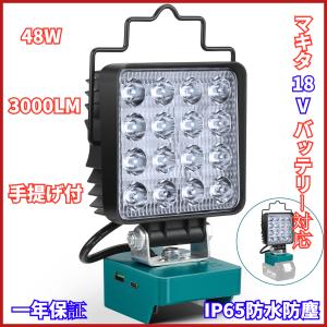 マキタ 18V ライト ワークライト LED 充電式 フラッドライト コードレス作業灯 投光器 48W 1LM IP65防水 手提げ付 USB Type-C充電 一年保証付き