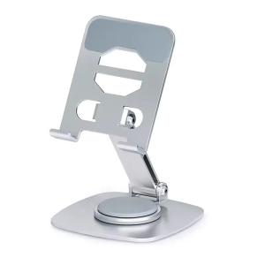 タブレットホルダー アルミ製ポータブルスタンド デスク用タブレットスタンド 高さ調節可能 回転式 360°回転ベース (シルバー)
