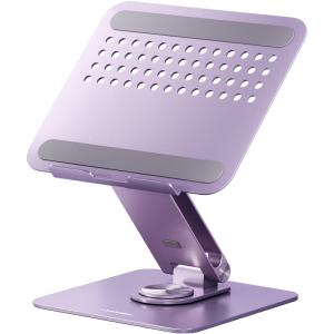ノートパソコン・タブレットスタンド アルミニウム合金 360度回転ベース 昇降安定 高さ調節可能 パープル