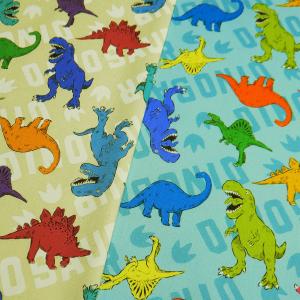 生地 布 カラフルな恐竜 ロゴ オックス 男の子 きなり ブルー 系 かっこいい 子供 110cm幅 商用利用可 メール便2mまで