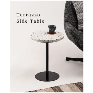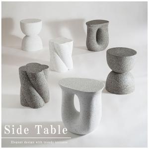 サイドテーブル テラゾー柄 おしゃれ オブジェ ナイトテーブル ソファサイド グレー モダン ベッドサイド ミニテーブル ストーン 大理石調 ツイスト 石 灰色 白