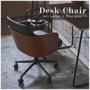 オフィスチェア 昇降機能付 キャスター付き ソフトレザー 木目調 デスクチェア パソコンチェア イス 椅子 PCチェア おしゃれ シンプル モダン 回転チェア