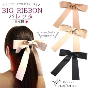 バレッタ リボン 大きめ 日本製 大人 可愛い お洒落 ヘアクリップ フォーマル ヘアアクセサリー 髪留め 髪飾り アレンジ 滑り止め