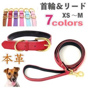 犬 首輪 リード セット 本革 犬首輪 おしゃれ XS S M 小型犬 中型犬 高級 かわいい 犬用 ペット 赤 ピンク ライトピンク 茶色 水色 紫 黒 ゴールド