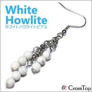 ホワイトハウライト ピアス <片耳> サージカルステンレス フックピアス 金属アレルギー 白 ハワイアンジュエリー フラダンス パワーストーン 天然石