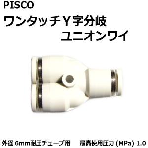 ワンタッチY字分岐 ユニオンワイ 外径6mmチューブ・パイプ用 圧力1.0MPaまでの気体(空気・炭酸ガスなど)