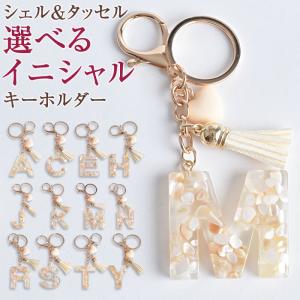イニシャル バッグチャーム シェル キーホルダー アルファベット リング おしゃれ かわいい プレゼント