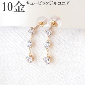 ピアス 10金 10k k10 キュービック ジルコニア 揺れる シンプル 地金 金 レディース プレゼント ぶら下がり