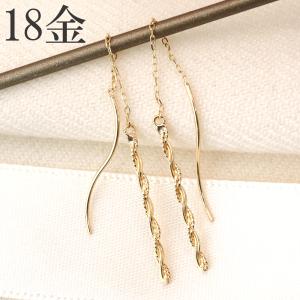 アメリカンピアス k18 18金 チェーン 18k ピアス シンプル スパイラル バー ぶら下がり 揺れる 18金ピアス レディース
