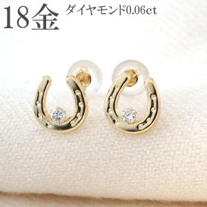 ピアス ダイヤモンド K18 18金 ダイヤ 馬蹄 ホースシュー 0.06ct 定番 レディース プレゼント