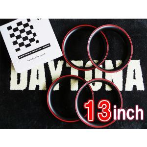 ホイールキャップ 純正スチール用 13インチ汎用 デイトナスタイルリング ブラック赤ライン 【1台分】 品番: DR13R 軽自動車、リッターカー等