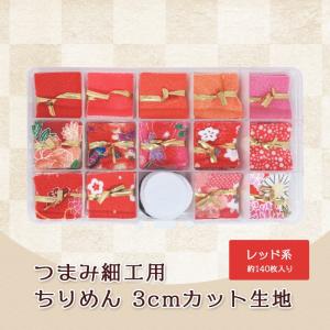 つまみ細工 ちりめん 3cm カット済み 花柄 無地 和柄 着物 生地 小物 飾り レッド系 140枚 和風 古典