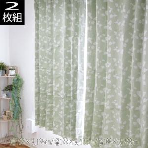 2枚組 1級遮光カーテン リーフ柄 幅100×丈135cm/幅100×丈178cm/幅100×丈200cm 送料無料(北海道、沖縄は1500円別途)