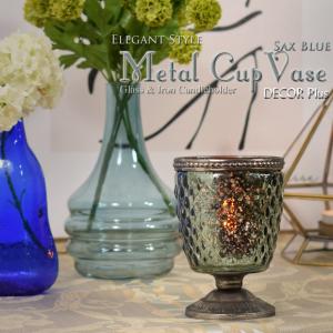 メタルカップベース サックスブルー キャンドルホルダー 花瓶 一輪挿し キャンドルスタンド ガラスポッド