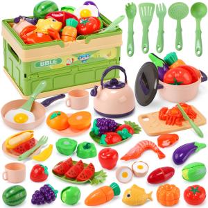 おままごとセット おもちゃ HOLYFUN キッチンセット ごっこ遊び 海鮮 野菜 果物 収納バッグ付け 調理器具 知育玩 お誕生日プレゼント (71点)