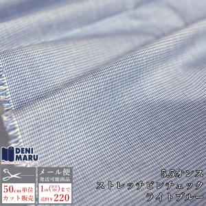 チェック 生地 薄手 コットン 5.5オンス ストレッチ ライトブルー シャツ ピンチェック パンツ スカート 商用利用可能 日本製 岡山 でに丸