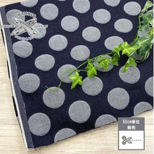 ジャガード 生地 薄手 デニム 9オンス ブラックデニム ドット柄 水玉 ジーンズ 手芸 日本製 国産 布 商用利用可 でに丸