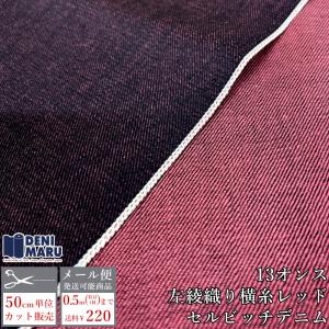 デニム生地 セルビッチデニム 13オンス 赤耳 カラーデニム 岡山デニム 左綾 レッド 綿 ヴィンテージ ジーンズ バッグ 古着好き アメカジ 岡山県 井原市 でに丸