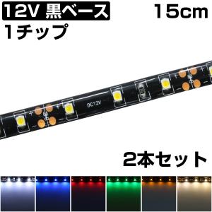 LEDテープライト 15cm 12V 防水 1チップ 黒ベース 正面発光 車 自動車 バイク 両面テープ 2本セット