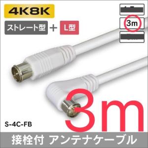 【4k8k対応】アンテナケーブル ストレート + L形プラグ付 4C同軸ケーブル 3m ダブルシールド
