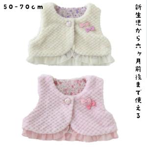 【メール便送料無料】新生児〜6ヶ月頃まで使えるふりふりベスト ボア レース リボン ピンク アイボリー 女の子 出産祝いにも