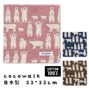 【普通郵便送料無料】ガーゼハンカチ(シロクマファミリー) 日本製 cocowalk 33センチ 綿 コットン タオル