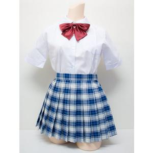 チェック プリーツ スカート 白×青 日本製◆W60〜85/丈30cm/丈40cm