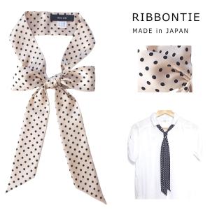 スカーフ リボンタイ メンズ レディース ボウタイブラウス風 ドット 中 水玉 5cm幅 ベージュ 単品 日本製 メール便 dplus arts