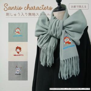 サンリオキャラクターズ 無地 ストール 刺繍入り マフラー クロミ ハローキティ ハンギョドン グッズ 秋冬 SANRIO CHARACTERS かわいい プレゼント レディース