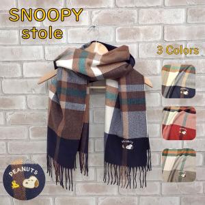 スヌーピー マフラー チェック ネイビー(紺) タータンチェック キャラクター グッズ