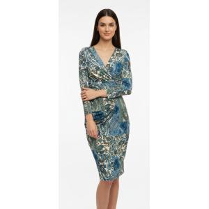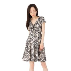 「エジェリワンピース」 EGERIEワンピース T1 T2 T3サイズ 半袖 膝丈ワンピース ペイズリー柄 Vネック ジャージー インポートワンピース ベージュ 大きいサイズ
