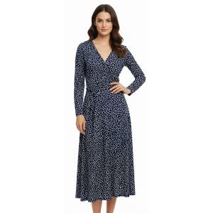 【フランス製/紺/ネイビー】EGERIE エジェリ ワンピース 8分袖 カシュクール Vネック ロング丈 マキシ丈 ペイズリー柄 ジャージー素材 体系カバー 大人