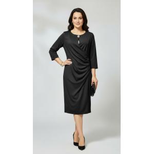 【EGERIE/エジェリ】ワンピース 七分袖 黒 ラップ風 カシュクール 膝丈 ジャージー素材 体型カバー 30代 40代 50代 オフィス フォーマル