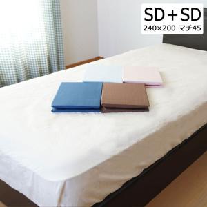セミダブル+セミダブル マチ45cm 防縮ボックスシーツ 幅240cm 厚さ40cm 厚いマットレス用 全周ゴム 日本製 綿100 高密度生地 ホテル仕様 厚手 洗える 春夏秋冬