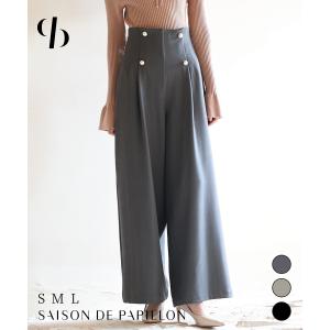 スカラップ ワイドパンツ ハイウエスト レディース オールシーズン ボトム ベルト付き 2点セット ポケット付き センタープリーツ きれいめ 大人 オ