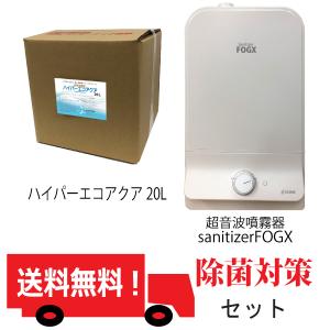 病院・施設でも使用のpH調整済み次亜塩素酸水!ハイパーエコアクア20L+超音波噴霧器sanitizerFOGXお得な除菌セット!