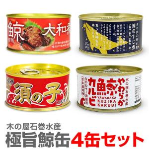 鯨三昧4缶セット(ひげ鯨大和煮・鯨須の子大和煮・鯨すじ肉 醤油味・鯨カルビ)【クール品同梱不可】※ 木の屋石巻水産 ※ (宮城県)