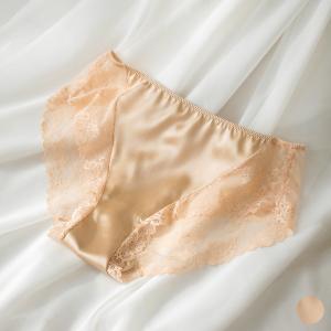 シルクサテン レース付きショーツ 日本製 レディース ベージュ M/L