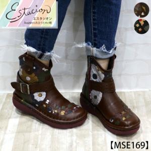 送料無料 ブーツ エスタシオン 靴 レディース estacion 本革 ブランド 軽量 カジュアル ショート レザー フラット ローヒール / mse169