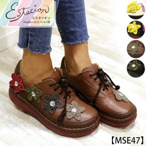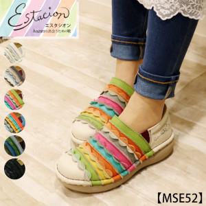 送料無料 スニーカー スリッポン カジュアル シューズ エスタシオン 靴 レディース estacion 本革 レザー 花 ストーン 歩きやすい キラキラ / mse47