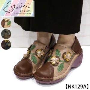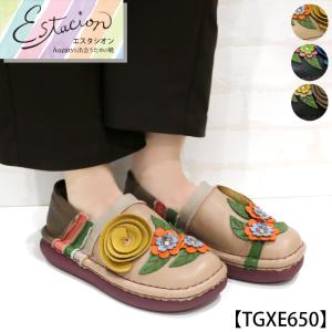 送料無料 スリッポン エスタシオン 靴 レディース estacion 本革 ブランド 軽量 カジュアル フラワー レザー フラット ローヒール / tgxe650