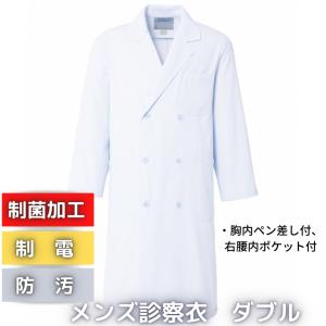 白衣 メンズ診察衣 ダブル 実験衣 制菌 制電 防汚 アプロンアパレル 255-70AP ドクターコート
